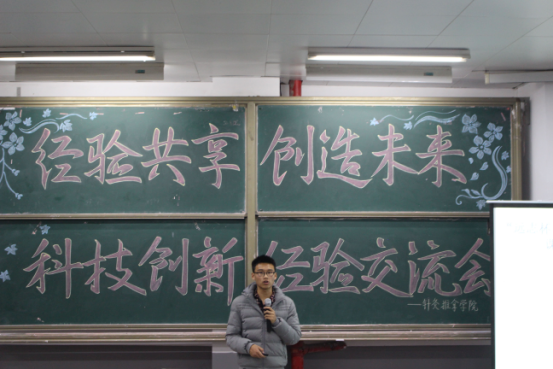 首先科技部部长杨松学长为大家介绍了大学生常参加的校、市、省及国家级科技创新类比赛的内容概要,让大家更加清楚地了解到科技创新比赛。随后彭勇学长和大家分享了科技创新的经验,他从怎样寻找灵感,怎样把灵感转化为现实,怎样申请专利等几个方面给大家作了介绍,同时他强调科创的成果要具备科学性、创新性、可行性,也要本专业相结合,要充分发挥自己的主观能动性,把小的想法推到大的舞台。紧接着谭佳佳学姐结合自身经历和大家分享和她在科技创新上的故事,她从自己做实验开始,谈到自己参加的科创大赛,她指出从这些比赛中她扩大了自己的眼界,增长了见识和阅历。最后陈宇奇学长从PPT的制作等方面与大家交流了经验。