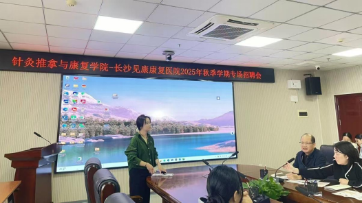 长沙见康康复医院负责人围绕医院核心优势展开宣讲,重点介绍综合实力、特色体系、人才培养三大亮点;分享康复治疗师成长路径;牢记医院“让患者有尊严地回归生活”的目标,呼吁践行“便捷、有效、人文”的康复服务理念。