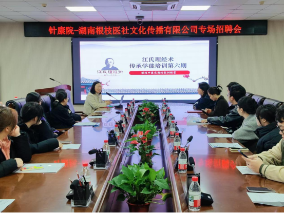 招聘现场,湖南根枝医社文化传播有限公司办公室主任赵婧首先介绍了发展概况,作为深耕中医药文化传播领域的专业机构,企业主营中医药文化推广、中医门诊服务等业务,坐拥根枝江氏理经术等特色技术,在行业内形成独特优势。随后负责人详细解读了针灸推拿、康复治疗等相关招聘岗位的任职要求、职业发展路径与薪酬福利体系,同步介绍了企业的人才培养计划和晋升通道,为毕业生求职提供清晰指引。