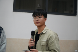 第三位,廖俊然。她展示从中药香囊拓展至养生产品矩阵的成果,结合“五环理论”框架拆解创业逻辑:以“刷小红书”拓流量、“制作香囊”磨产品,逐步推进至“组建团队、自给自足”的目标,落地“线上塑品牌、线下低成本布局”的闭环路径;最后,她以“希望学弟学妹们不以绩点为导向地去好好学习专业知识,不以综测为目的地去积极投身社会实践。”寄语学弟学妹。